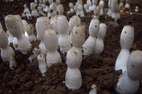 After 20-25 days Shaggy Mane fructifications will start to form.During this period start water spraying the