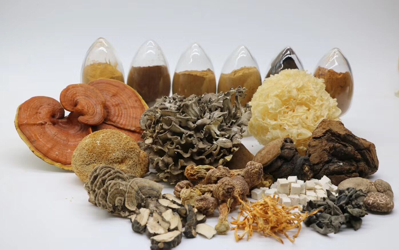 Beta-D-glucans are the most important compounds in the polysaccharides. In the mushroom polysaccharides mainly contains beta glucan and alpha glucans. Different with oats & grains molecule beta glucan are (1-4)-beta-glucans, the mushroom beta glucan molecule are (1-3)(1-6) beta-D-glucans which are specific in fungus and yeast. The beta glucan activates the immune system and might even have anticarcinogenic properties.And another ingredients in polysaccharides are alpha-glucans which like glycogen, pullulan, dextran and starch, most of time we called are the filler of mushroom products. And the dextran and starch is very common polysaccharides that is find in many products or foods like potatoes, corn, rice and grains.